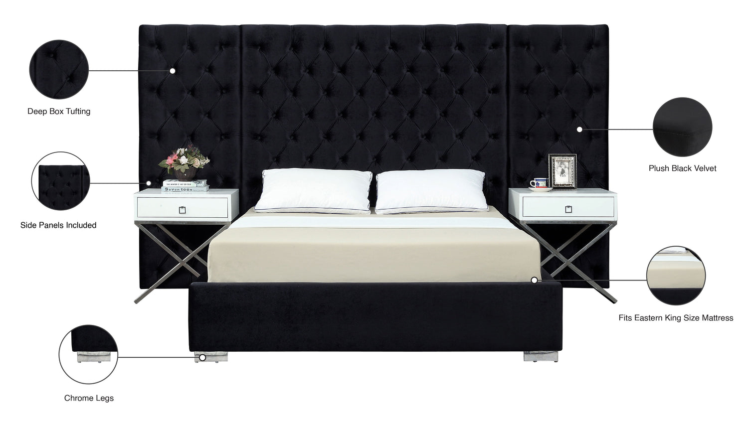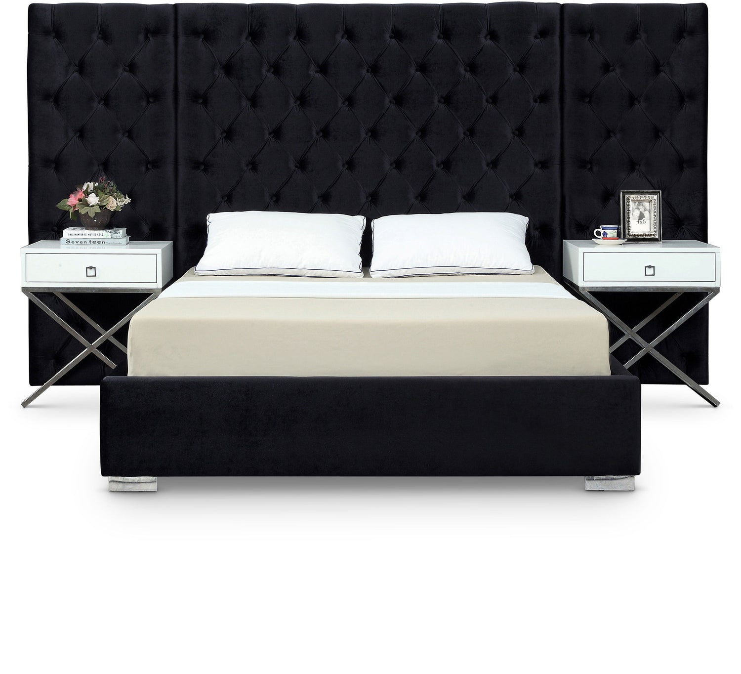 Rejuvenate your bedroom space with this Grande Bed. Svelte velvet covers each inch of this magnificently styled bed, lending it a bit of softness and glamour. The bold headboard is heavily button tufted for a regal and sophisticated look, and it's padded, so you can rest your back against it while you read or watch TV. The full-framed base is modish and sleek and provides sturdy support for the mattress of your choice.