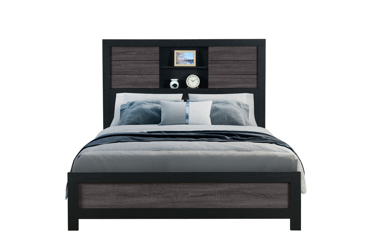 Lisbon - Queen Bookcase Bed Headboard Footboard - Gray Black