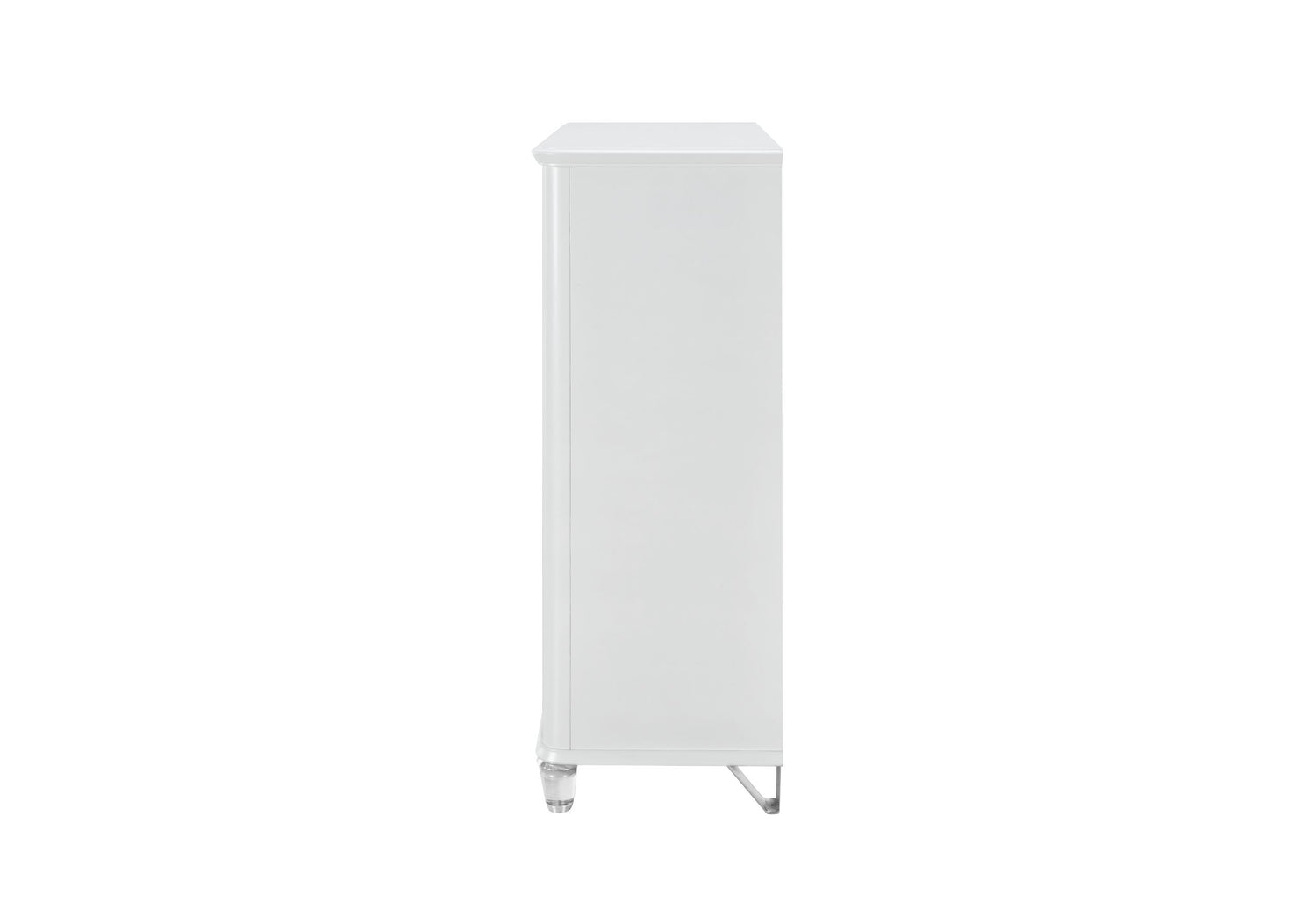 Maximize your storage with the Apollo Chest. Its textured drawer fronts and acrylic legs bring a contemporary feel, while its vertical design saves space without sacrificing style.