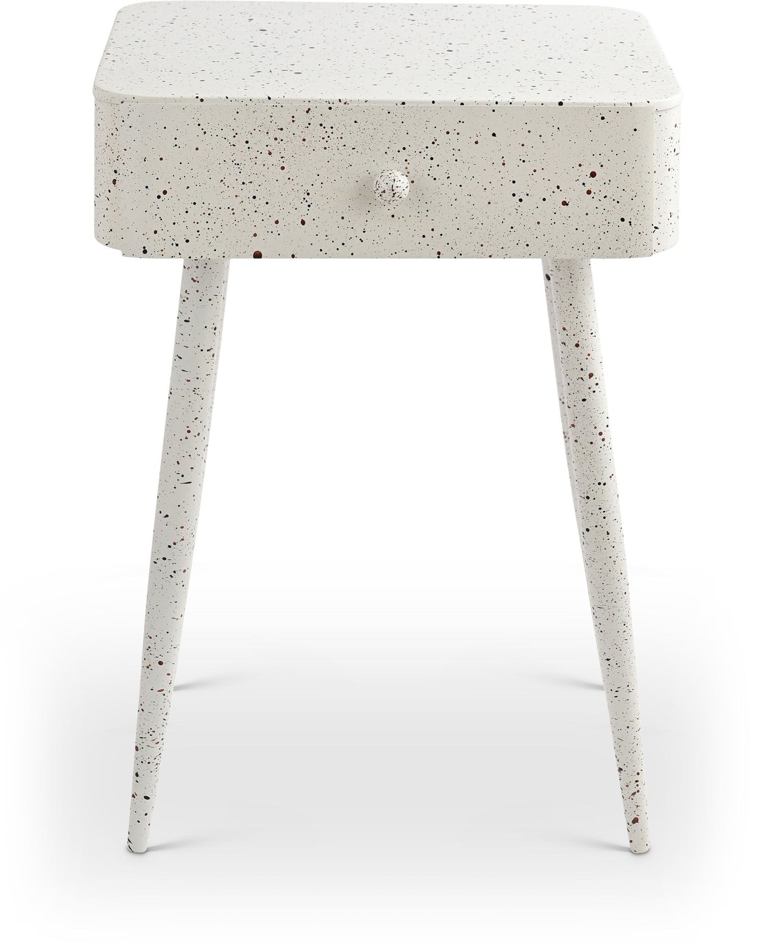 Revamp your space with the Rylan iron nightstand, a stunning blend of terrazzo that brings an artistic edge to contemporary design. This iron metal piece, designed to shine as both a nightstand and a side table, features a sleek drawer that keeps your essentials neatly tucked away. Its innovative design and distinctive pattern make it a standout addition, infusing your bedroom or living area with both elegance and a touch of bold creativity.