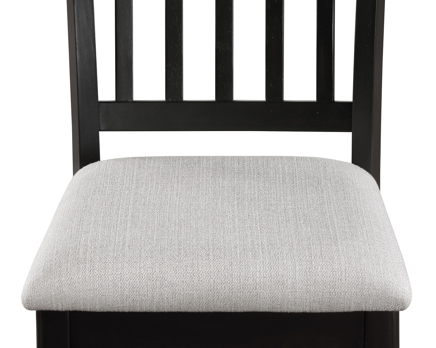 Introducing a modern counter-height dining set with a touch of classic charm. Featuring a deep black finish, complemented by a contrasting light table top inset, this ensemble offers both comfort and straightforward style. The vertical slats on the chairs provide a subtle design detail, making it a versatile choice for various dining spaces. Durable, stylish, and functional, it's the perfect addition for everyday meals or special occasions.