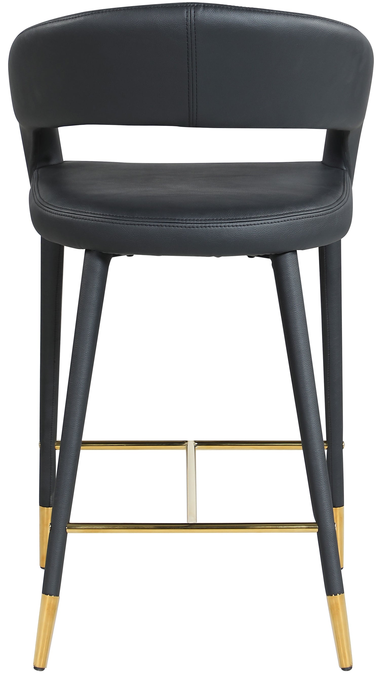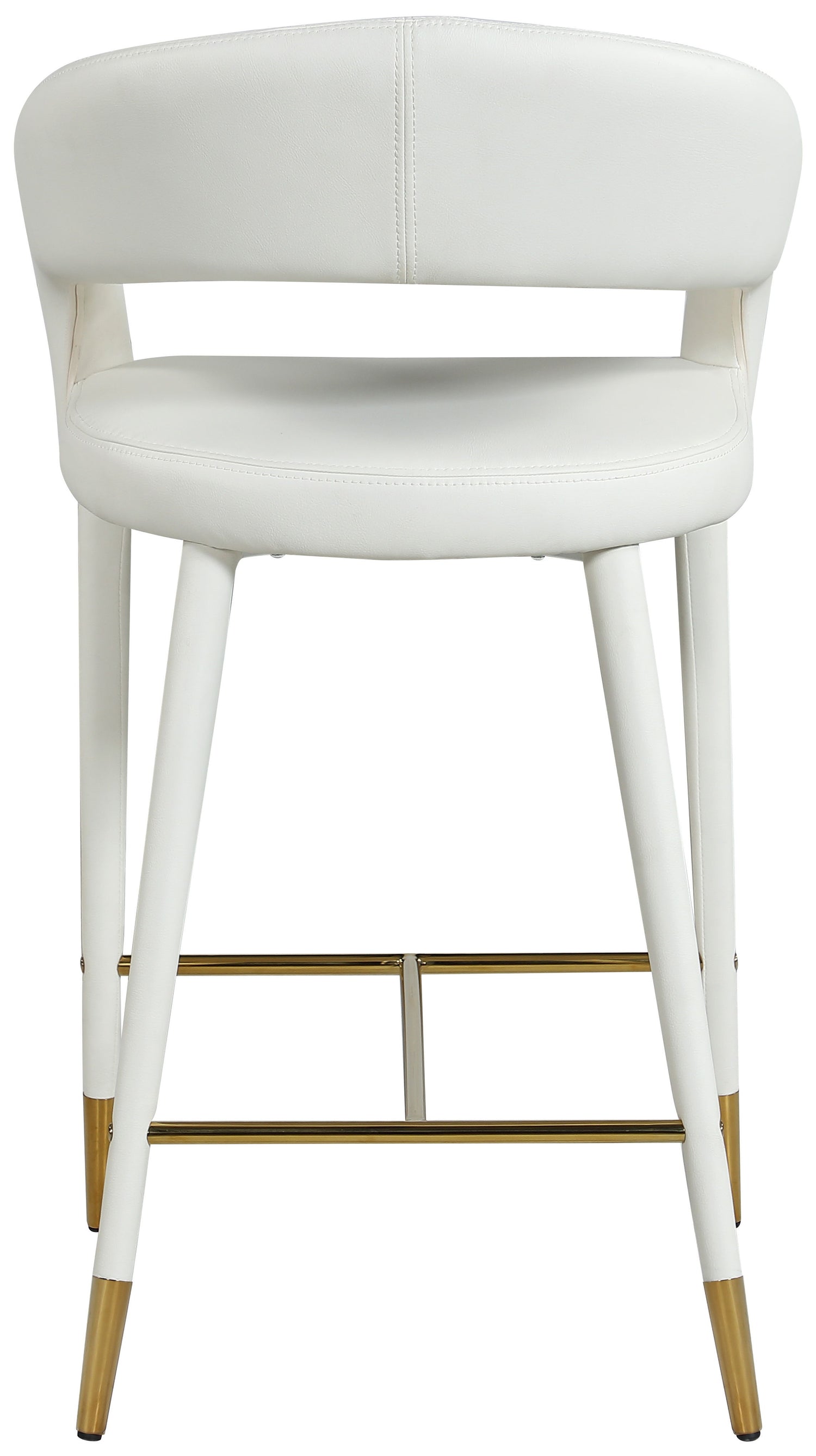 Settle in for a meal with friends seated in this Destiny stool. Soft upholstery makes this stool a sleek and inviting option for pairing with your favorite counter table. The rounded back adds comfort to mealtime and lends the stool a chic, eye-grabbing touch, while tapered legs topped with gold tips give the stool an elegant finish.
