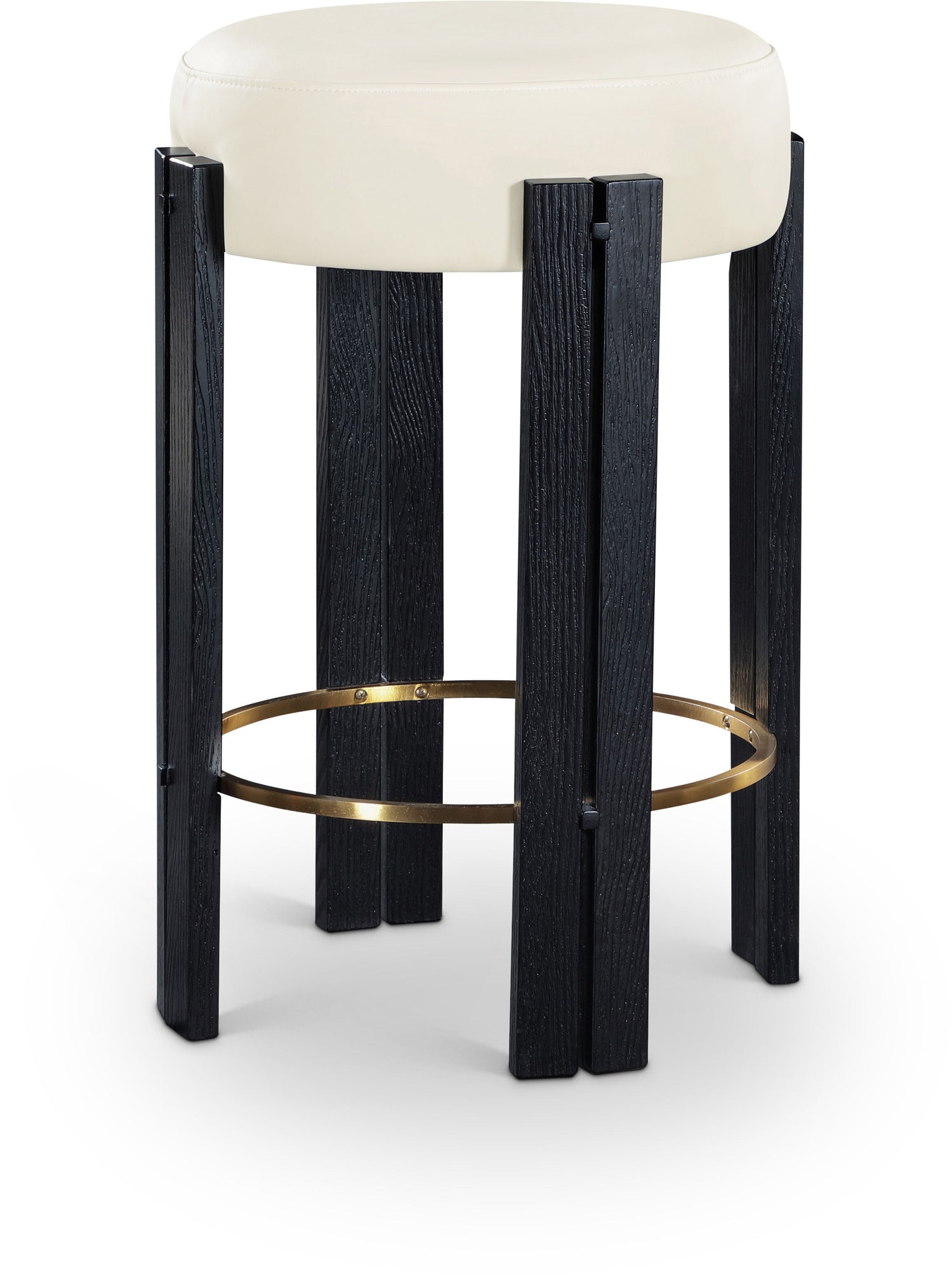 A work of art is the Harrison vegan leather upholstered counter stool designed to magnify your kitchen or bar area. Its unique design and high-quality materials, including a brushed brass metal footrest and rich legs, create a stylish and functional piece. A classic design enhances the luxurious feel to your space for a timeless aesthetic.