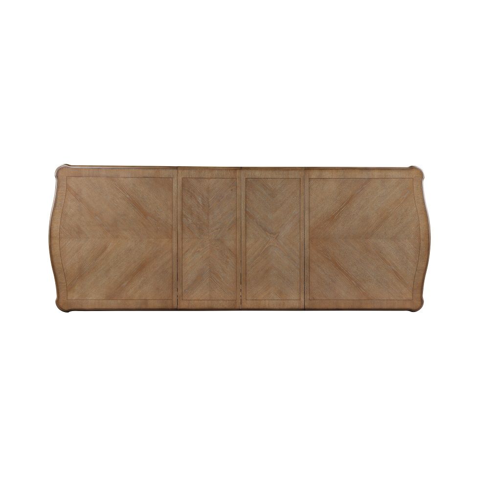 Introducing the charming Florian dining table that combines timeless elegance. This table is designed to be both visually appealing and versatile, offering ample space for gatherings and featuring two 18” extension leaves for added convenience. The table's antique white finish turned legs add a touch of vintage charm and sophistication. The intricately carved details and graceful curves of the turned legs enhance the table's overall aesthetic, bringing a sense of classic elegance to your dining area. Contrasting beautifully with the white legs, the tabletop features an oak finish. The oak finish adds a natural and warm element to the table, exuding a sense of rustic beauty and character. Gather around this table and create lasting memories with family and friends in a setting that exudes timeless elegance.