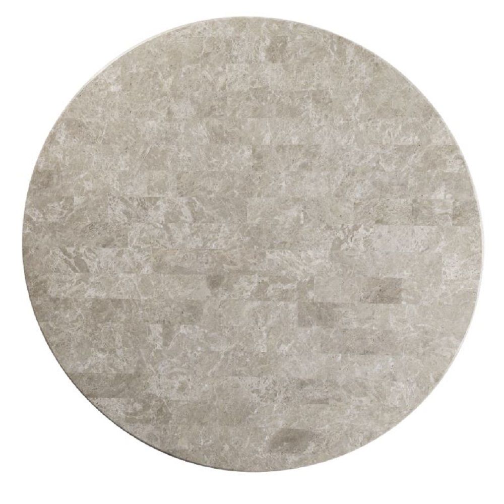 The Karsen dining table has a warm and inviting feeling to it. This table features a round genuine marble dining tabletop; the table features a classic leg base with an X-shaped support for durability, finished in rustic oak. Perfect for inviting family and friends for breakfast, lunch, dinner, or even afternoon tea. You will love it!
