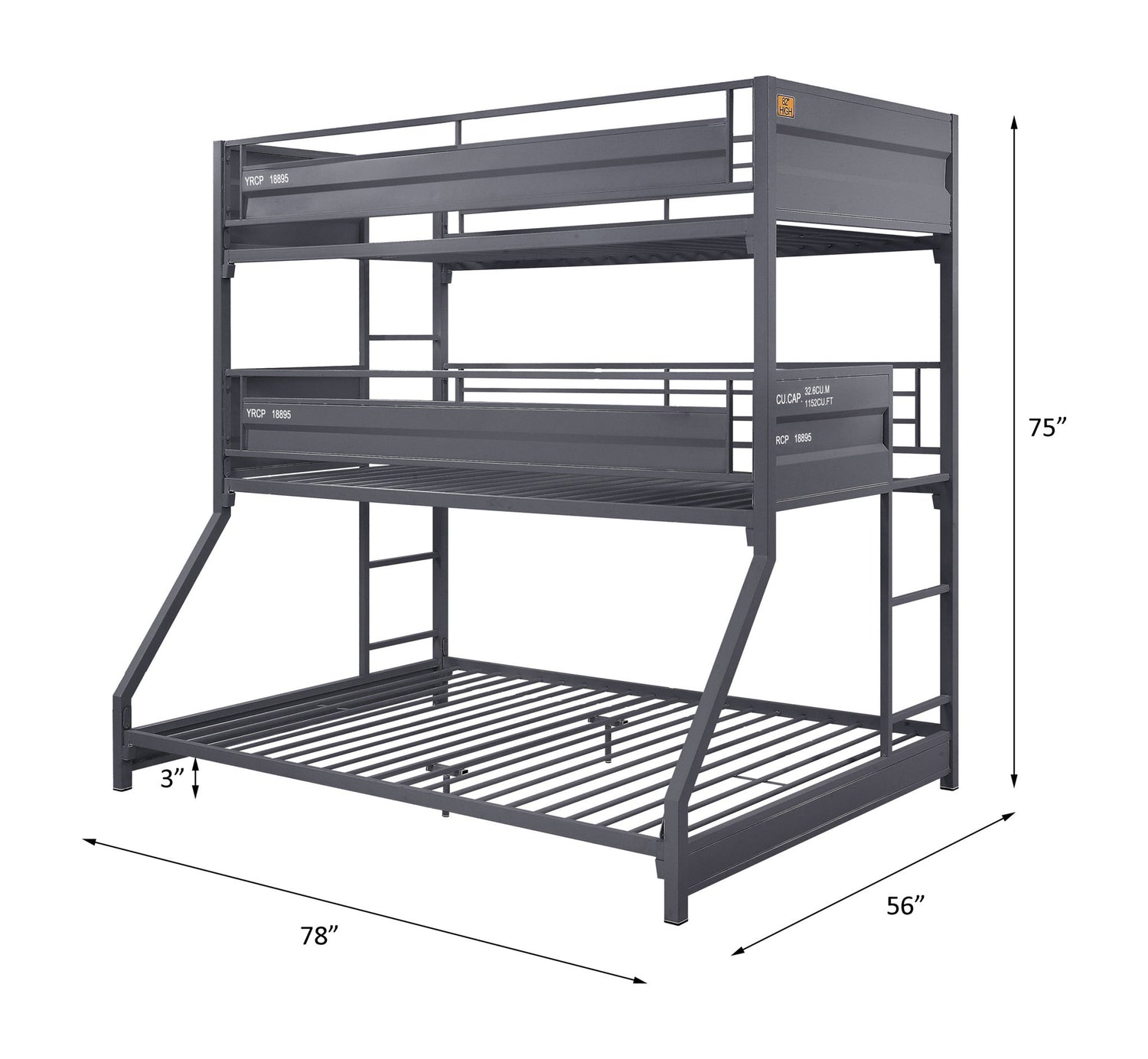 Cargo - Twin Over Twin Over Full Bunk Bed - Gunmetal