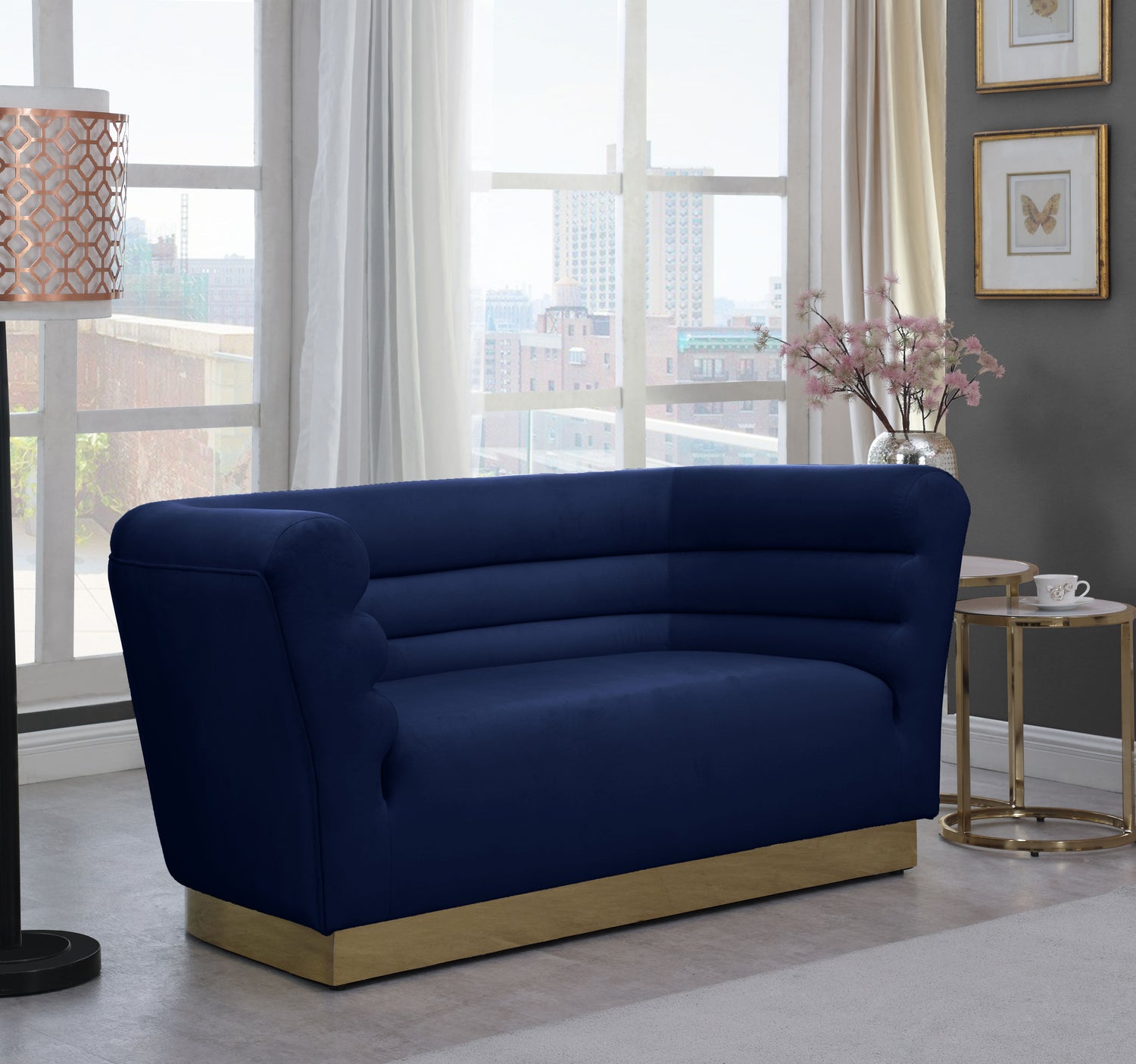 Add a bit of pizzazz to your living space with this Bellini Loveseat from Meridian Furniture. velvet upholstery offers you a luxurious place to curl up with a good book or rest in front of the TV after a long day, while horizontal channel tufting creates texture and style. Its uniquely curved shape makes this piece a perfect addition to any room in your modern home.