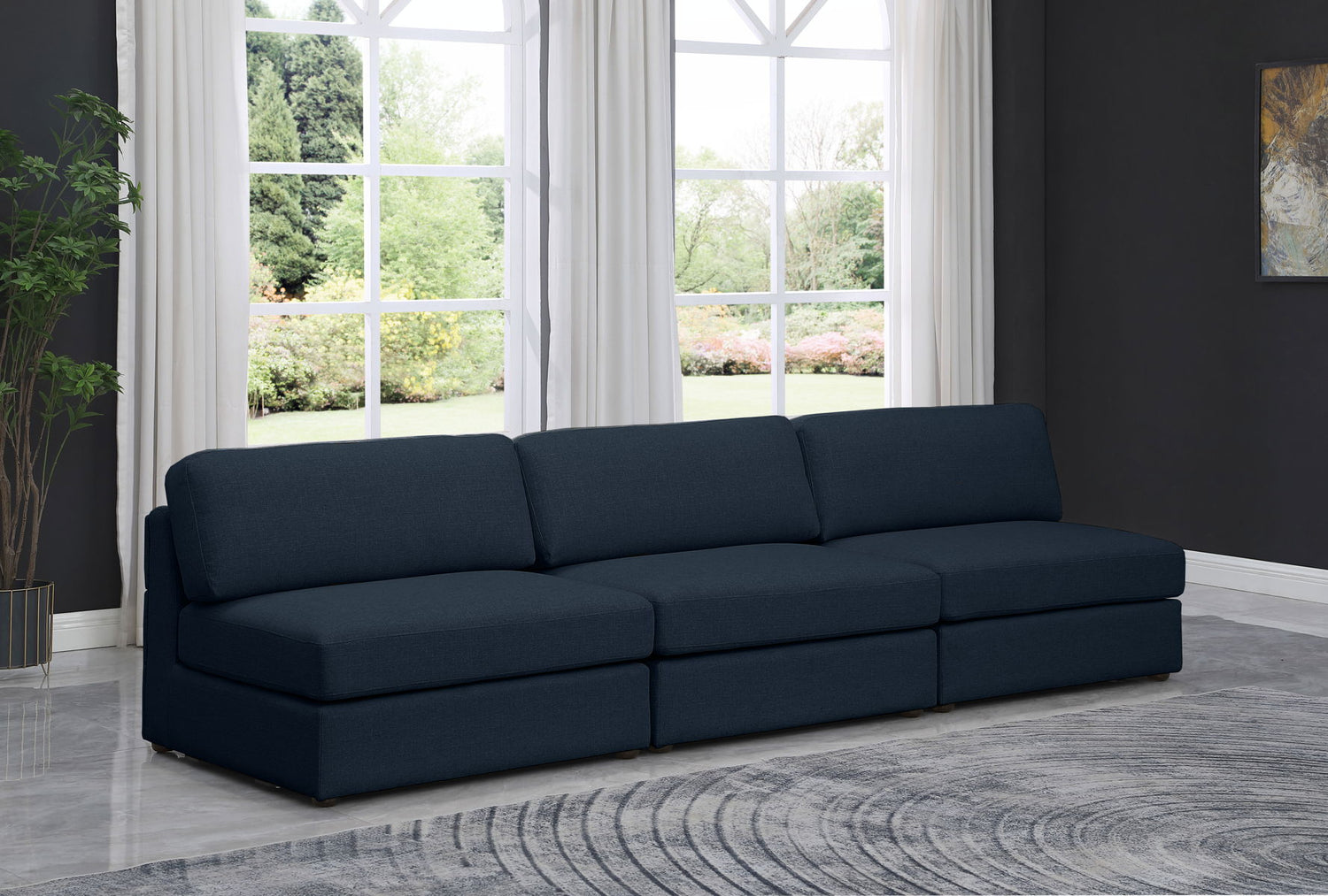Beckham - Modular 3 Piece Armless Sofa - Navy