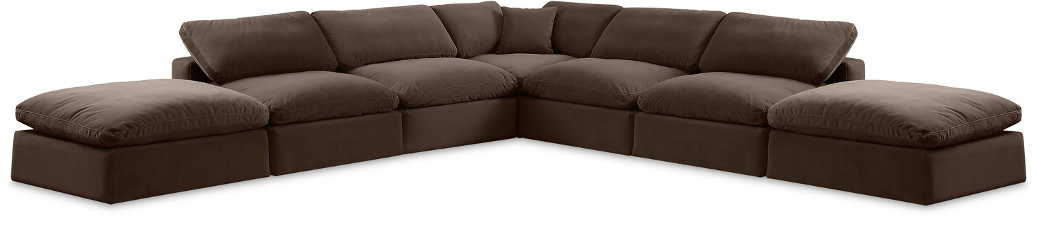 Comfy - 7 Piece Velvet Modular Corner Sectional - Dark Brown
