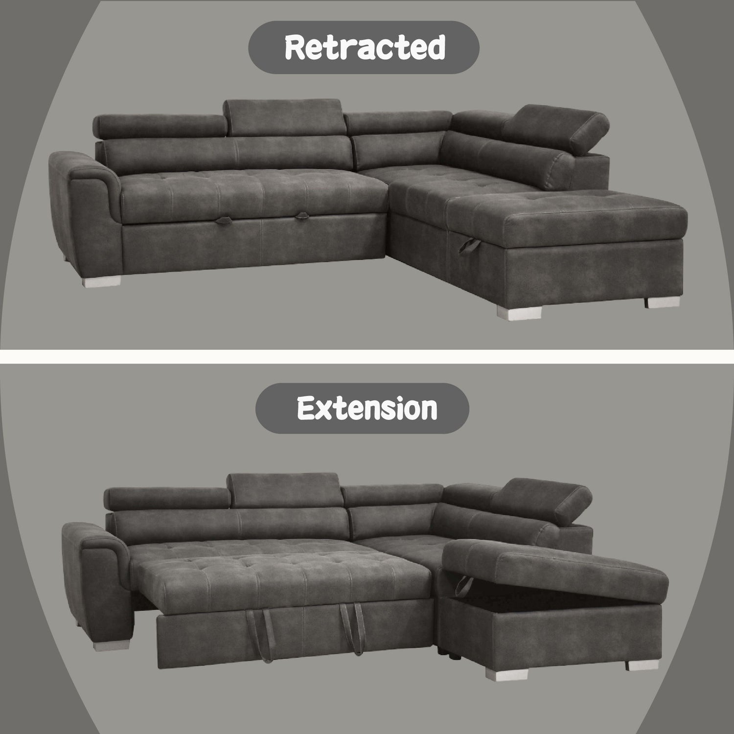 Thelma - Sectional Sofa With Pull-Out Bed - Gray Polished Microfiber