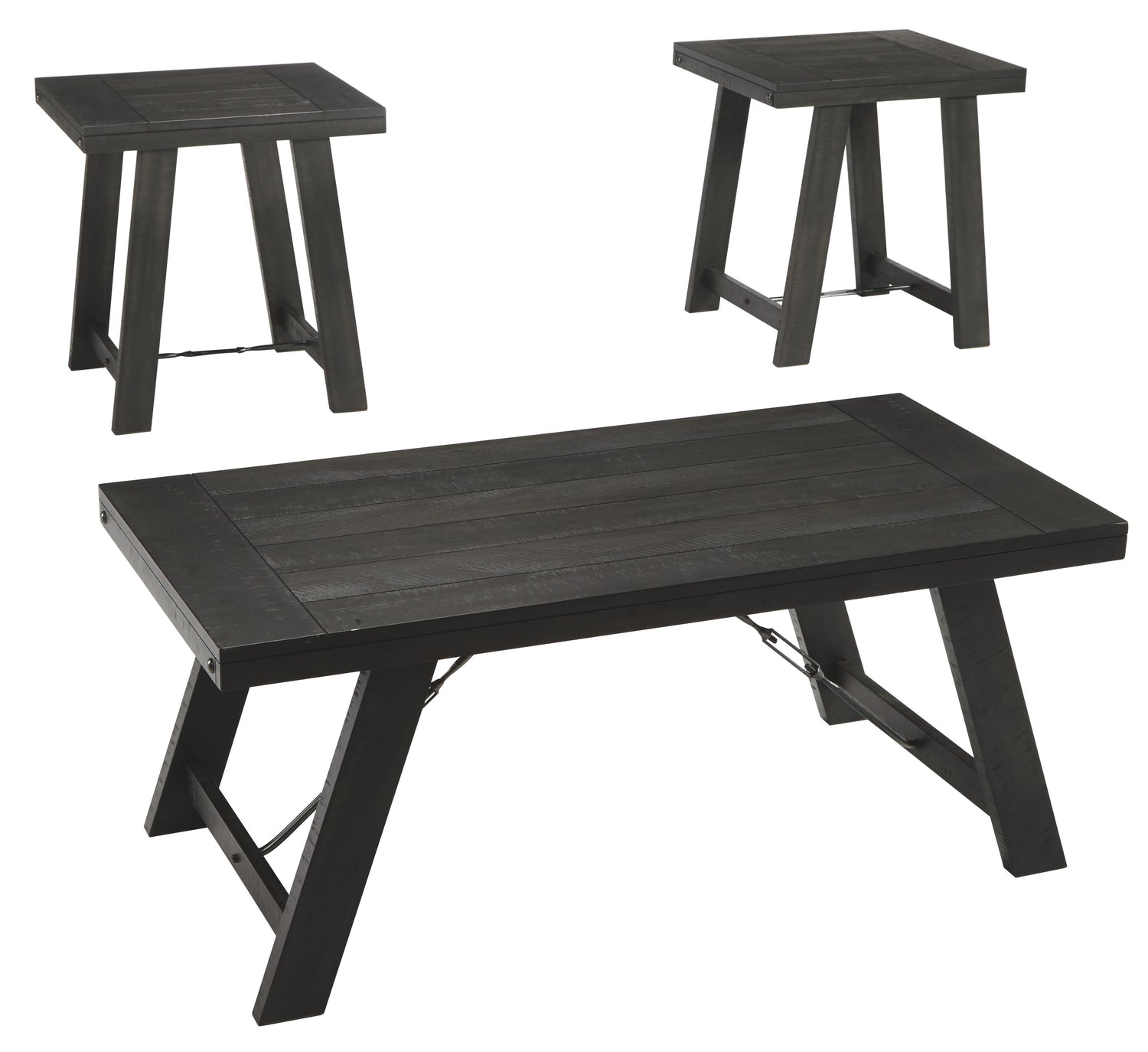 Introduce a handsome country feel in your living area with this casual occasional table set. Planked tops with a breadboard layup supported on canted legs give this set a distinctive farmhouse look. The vintage distressed black wash finish combined with the end tables' leg stretchers and coffee table's tension bars deliver a sense of industrial antiquity that makes this set look robust—what a sharp look that transcends time.