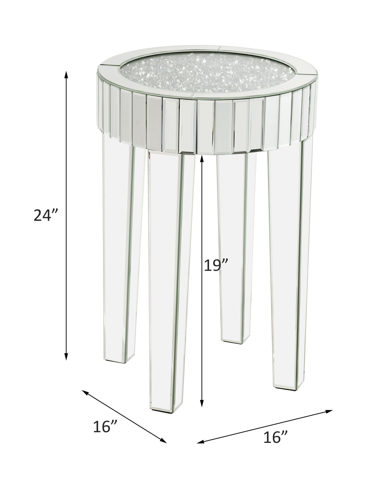 Noralie - 16" Round End Table - Mirrored & Faux Diamonds