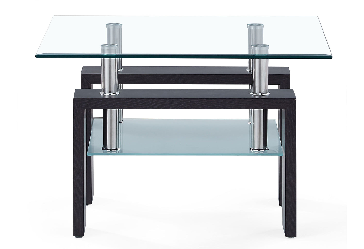 Featuring a clear tempered glass table top and dark walnut legs, this table looks amazing. Contemporary in style and versatile enough for many room settings, this piece is simply a must have for your living space.