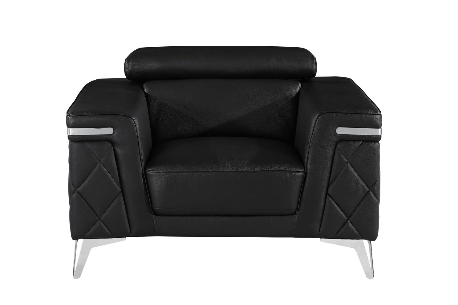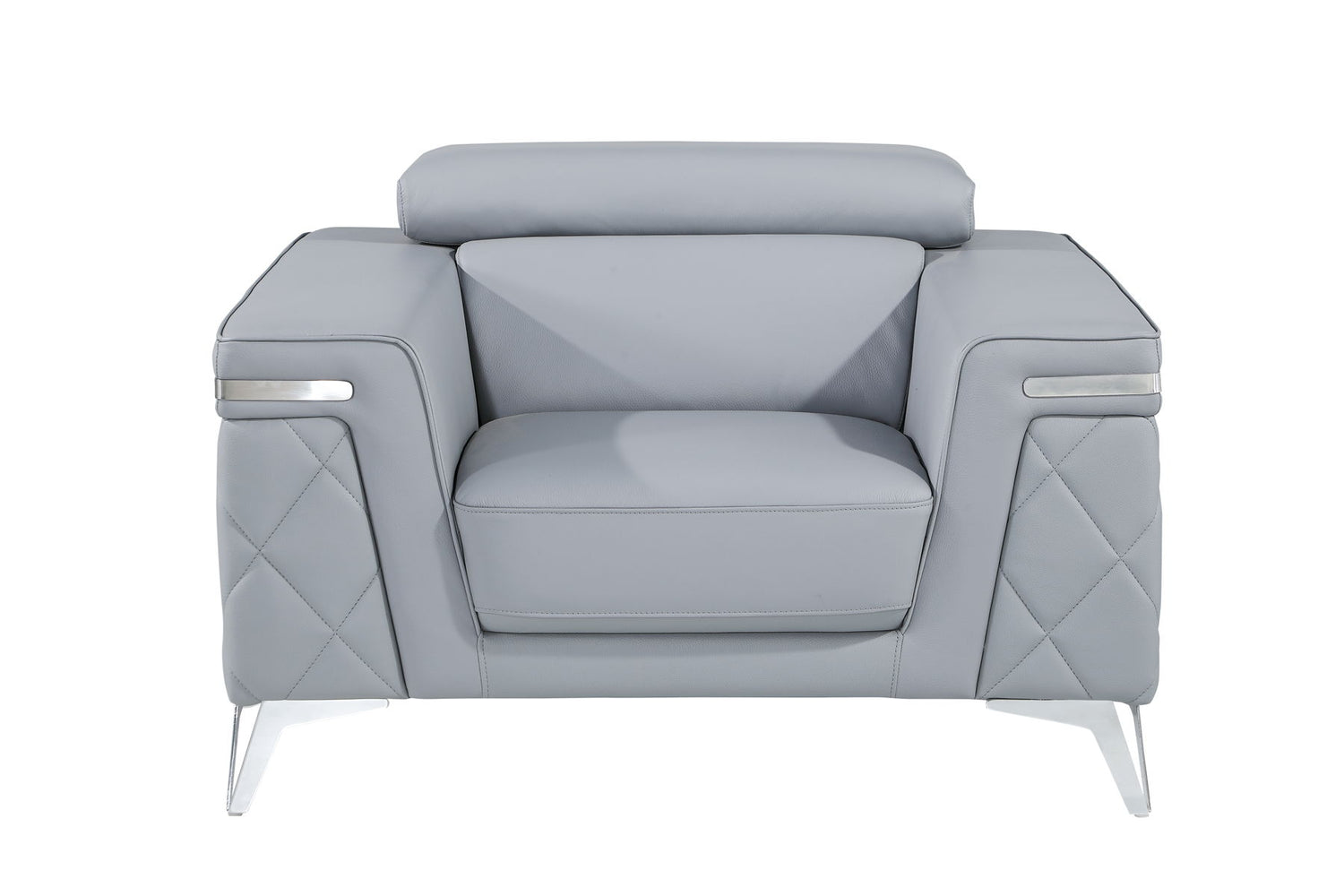 Exuding stylish form and comfort, this chair is a wide width for comfortable seating and is inspired by Italian design. The gorgeous, stainless steel chrome legs and trim add a beautiful contrast to the top-grain Italian leather upholstery. Additional support is provided with adjustable headrests for neck comfort that uses a state-of-the-art Japanese ratchet system with multiple adjustable positions. The cushions easily seat one person in optimal comfort, with the width of the armrests also offering a functional purpose as a perfect place for resting your drink or a book. The selection of top-grain Italian leather for the upholstering and solid Brazilian wood for the sofa frame is done with the utmost respect for the finest raw materials. Italy is world-renowned for high-quality leather. You can smell, feel, and see its high quality in every sofa set.