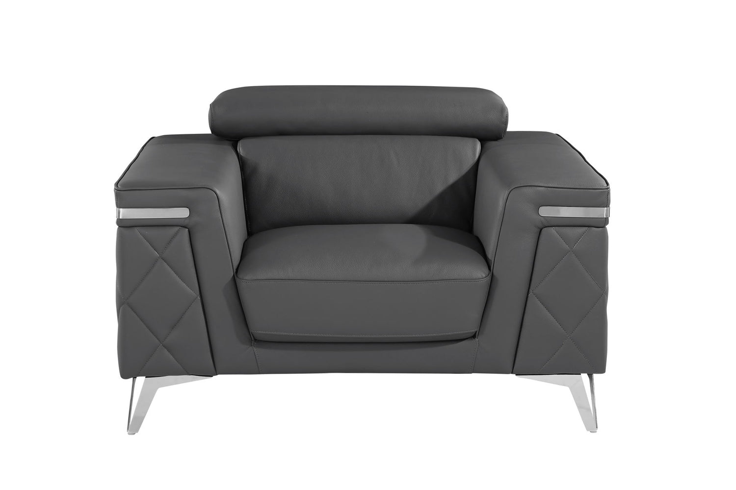 1140 - Top Grain Italian Leather Chair - Dark Grey
