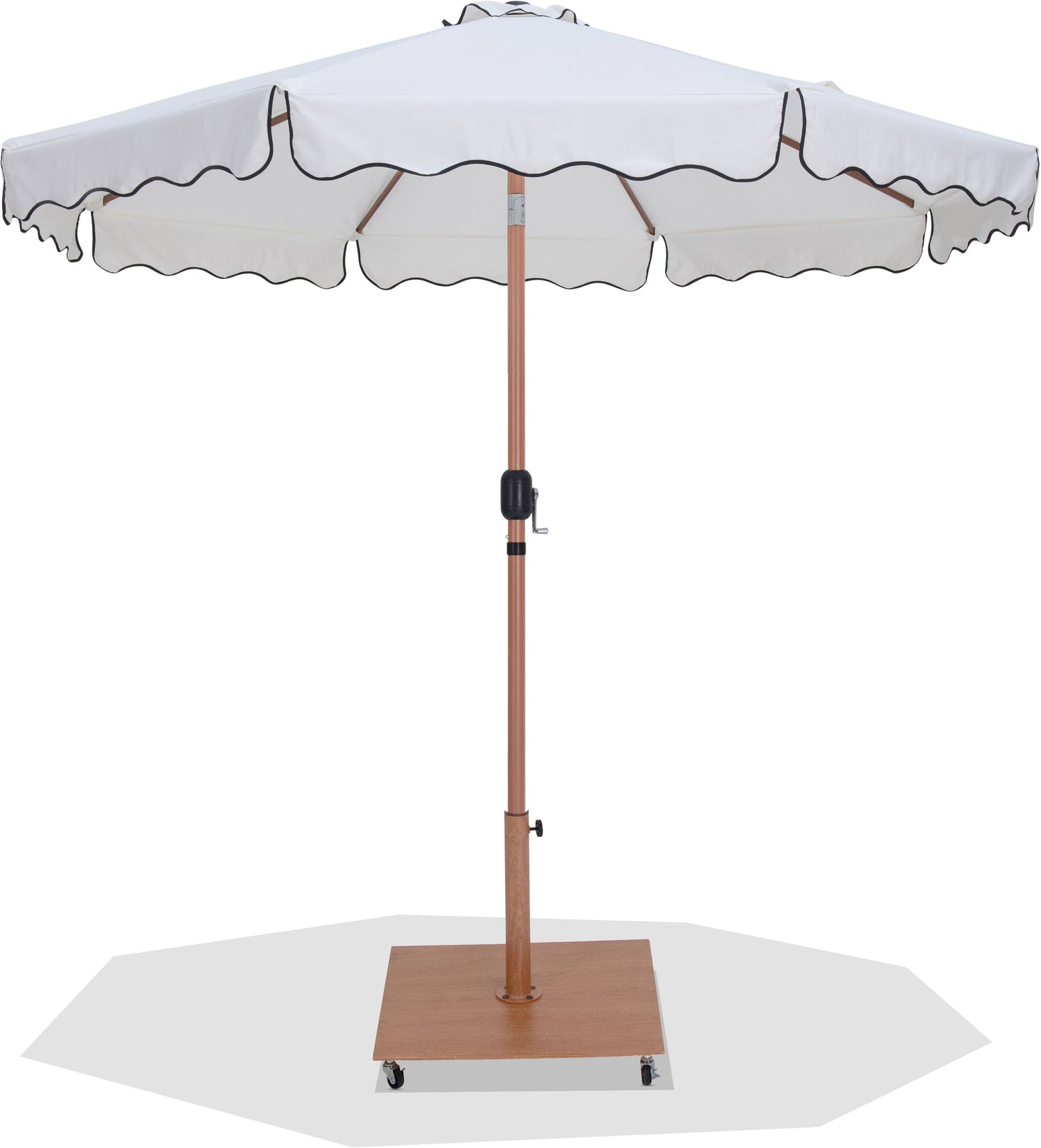Amalfi - Fabric With Black Piping / Teak Aluminum Patio Umbrella with Base - White