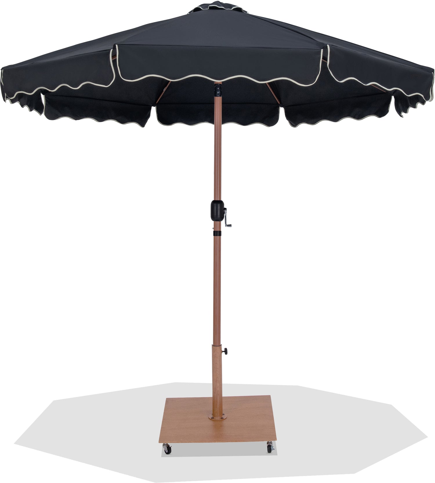 Amalfi - Fabric With Cream Piping Aluminum Patio Umbrella with Base - Black / Teak