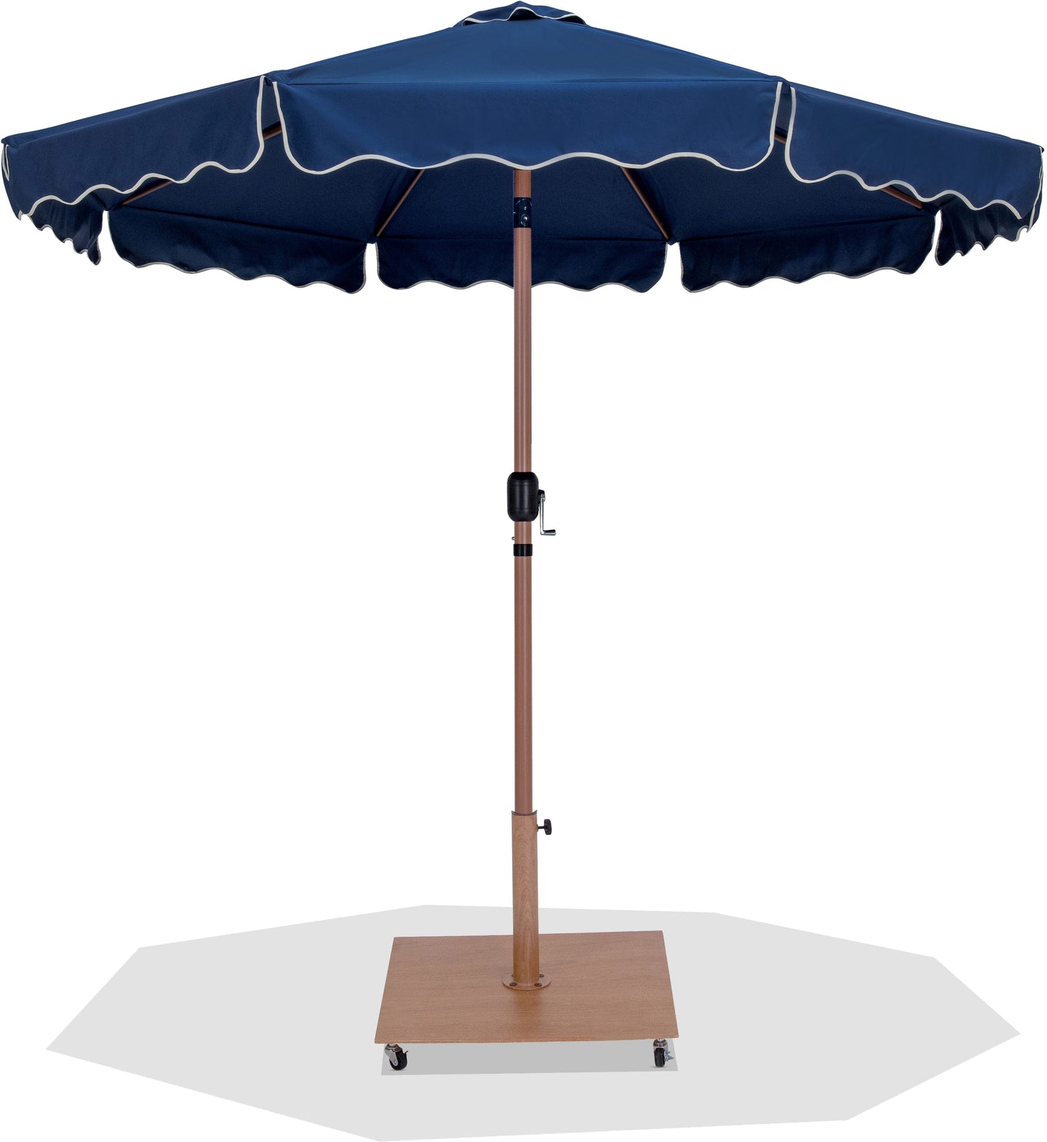 Amalfi - Fabric With Cream Piping Aluminum Patio Umbrella With Teak Base / Teak Pole - Navy