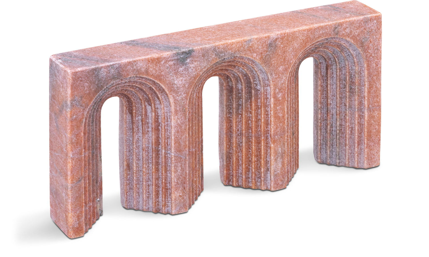 Architectural curves meet sculptural form to create the Capri marble Curva decorative object. Its fluted arches and weighty presence add a bold, classical edge to any tabletop or shelf display. No two pieces will ever be alike.