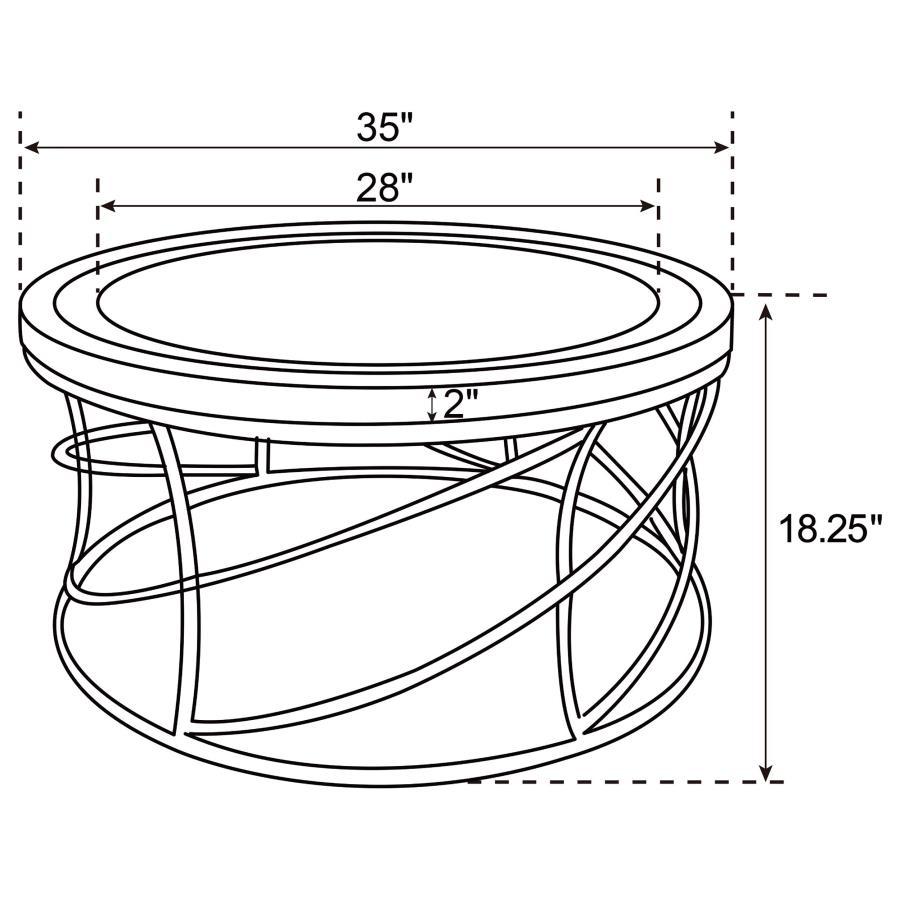 Golden spirals and spindles create a fresh sense of movement and energy in this round coffee table. The mirrored top is framed by an inset ring of acrylic crystals, creating a jewel-like effect that adds texture and depth. Acrylic crystals adorn the edge of the table, further enhancing its glamorous look. The base, crafted from stainless steel with a gold particle vapor deposition (PVD) finish, adds a dynamic flair to the piece. With its striking combination of gold and silver elements, this modern glam table brings inspired style to your living room.