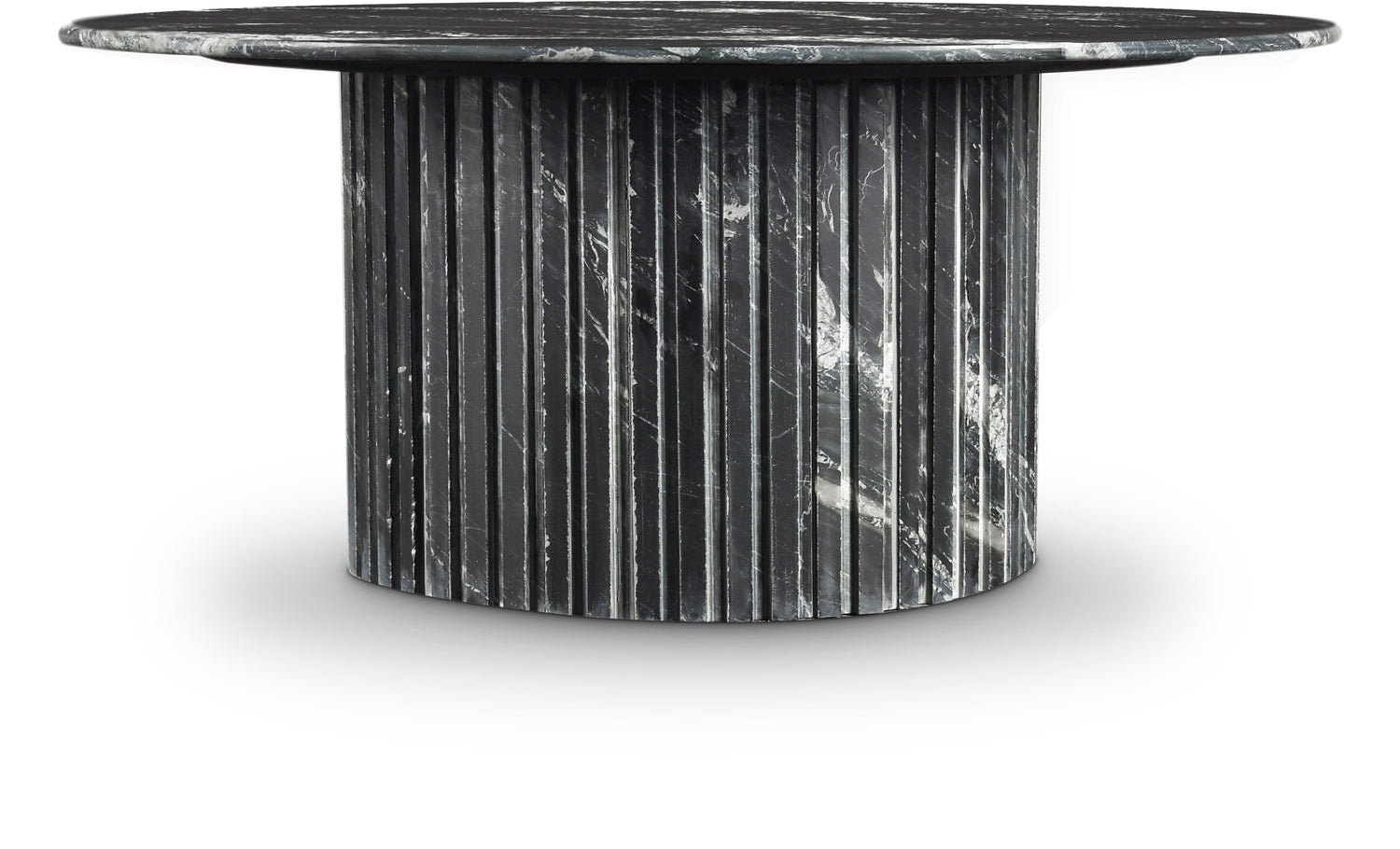 Add a refined look to your room with this handcrafted Genoa coffee table, a stunning masterpiece that marries elegance and practicality. Crafted from genuine travertine, each table is a unique work of art, featuring a travertine top with intricate white veining. The fluted travertine base adds a touch of art deco design, making it a statement piece in any room and adding to its heirloom-quality design.