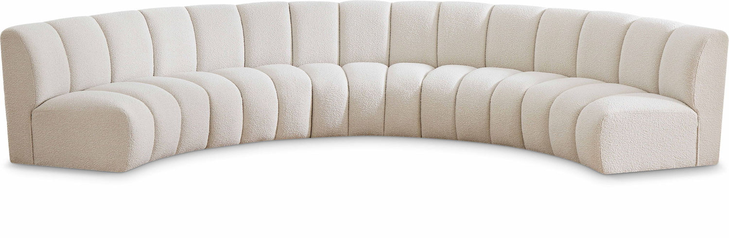 Mix and match this Infinity boucle fabric modular chair with other items in the Infinity collection to find the best possible seating solution for your gang. Rich boucle fabric feels welcoming and soft to the skin, so you stay seated comfortably for the big game or while watching your favorite programs. Deep channel tufting adds to the longevity and durability of this modular chair while giving it texture.