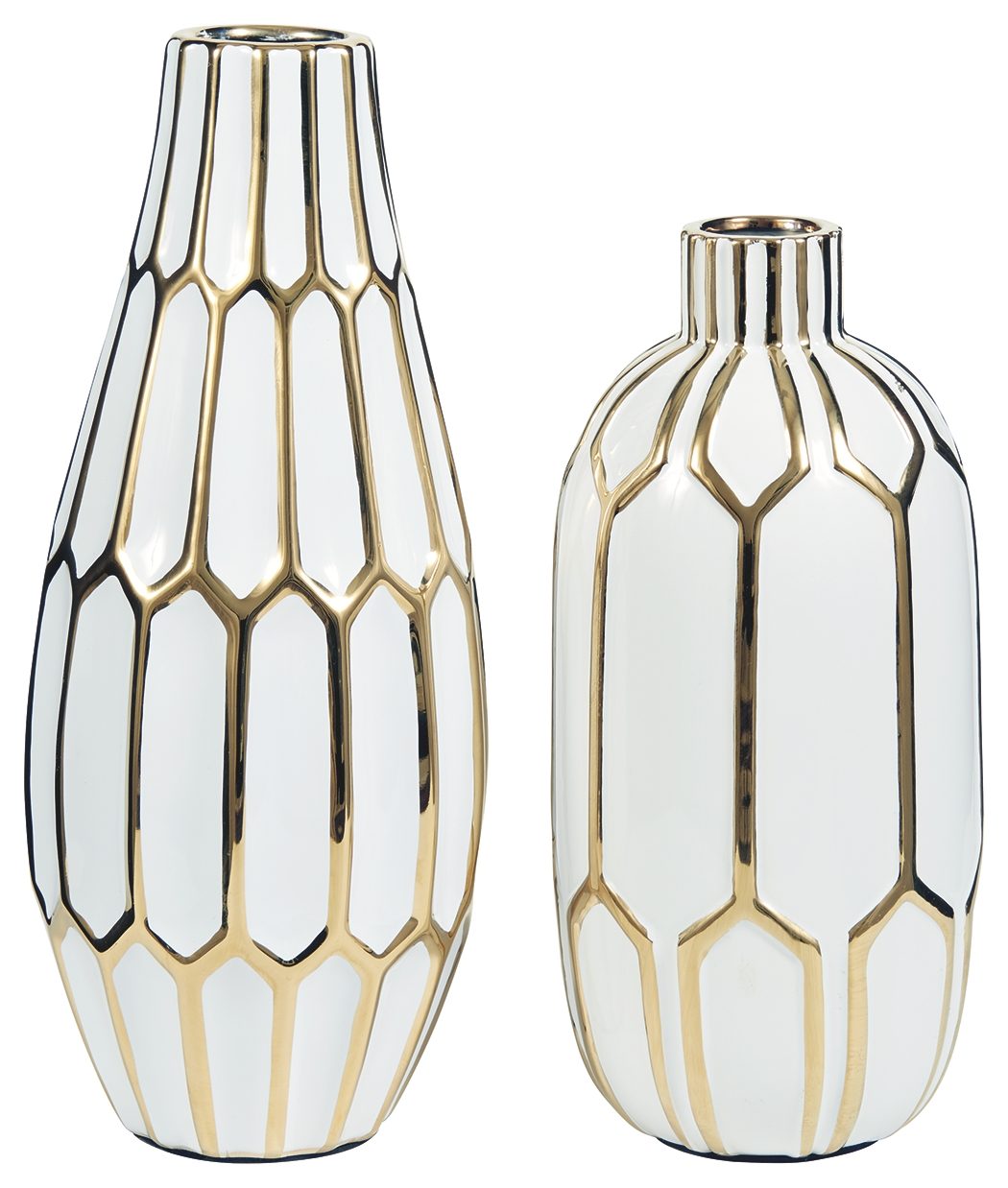 Mohsen - Vase Set (Set of 2) - Gold Finish / White