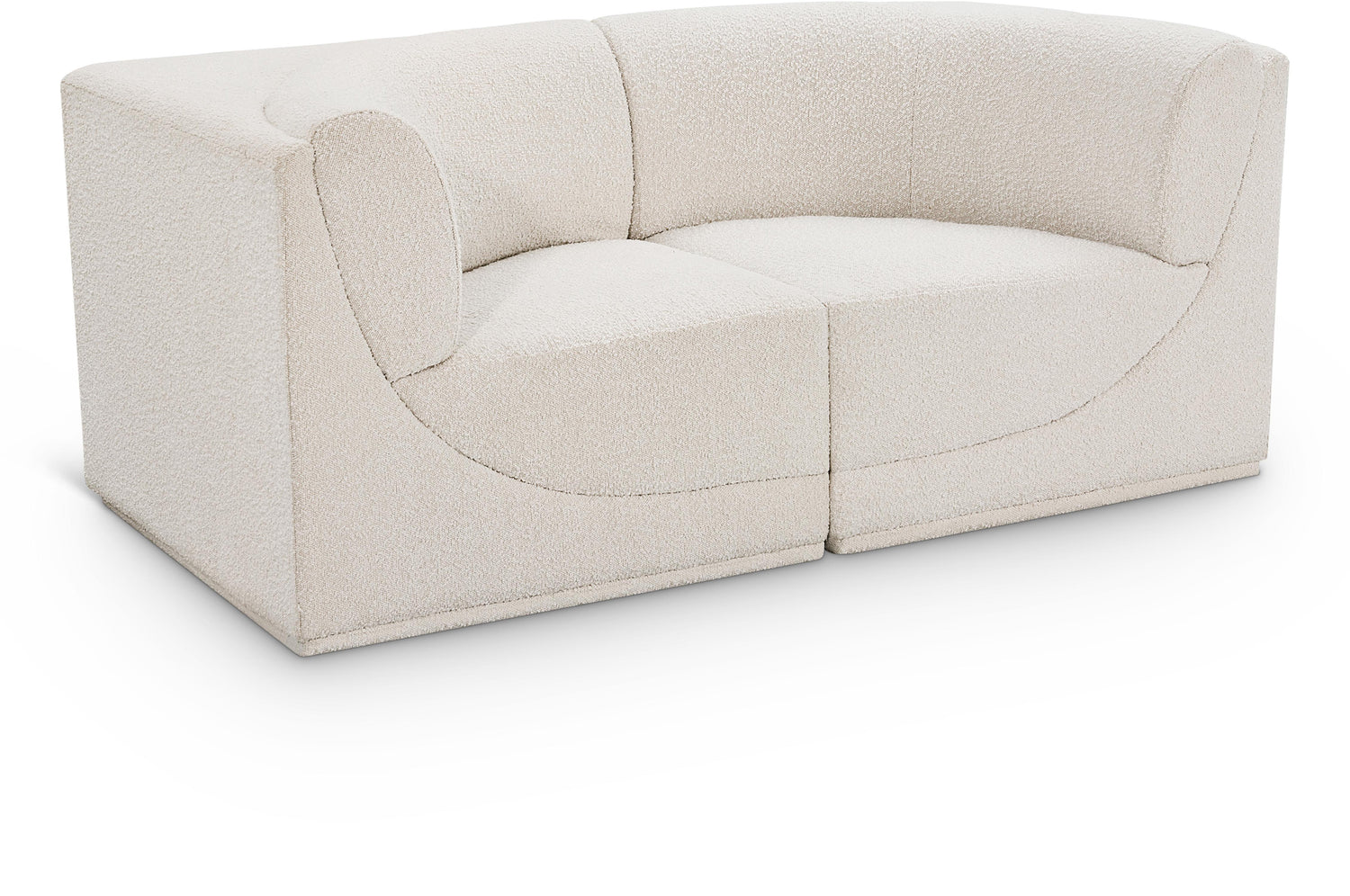 Meet the epitome of style and functionality with this Ollie boucle fabric living room sofa, part of the Ollie modular collection. A contemporary marvel, this sofa features chic and inviting rich boucle fabric upholstery, giving it a sumptuous texture that oozes elegance and luxury. Curved corners add to the visual look of the sofa while maximizing seating comfort while lounging, reading, or entertaining. Pair it with other items in the Ollie collection easily, thanks to an attachment latch underneath.