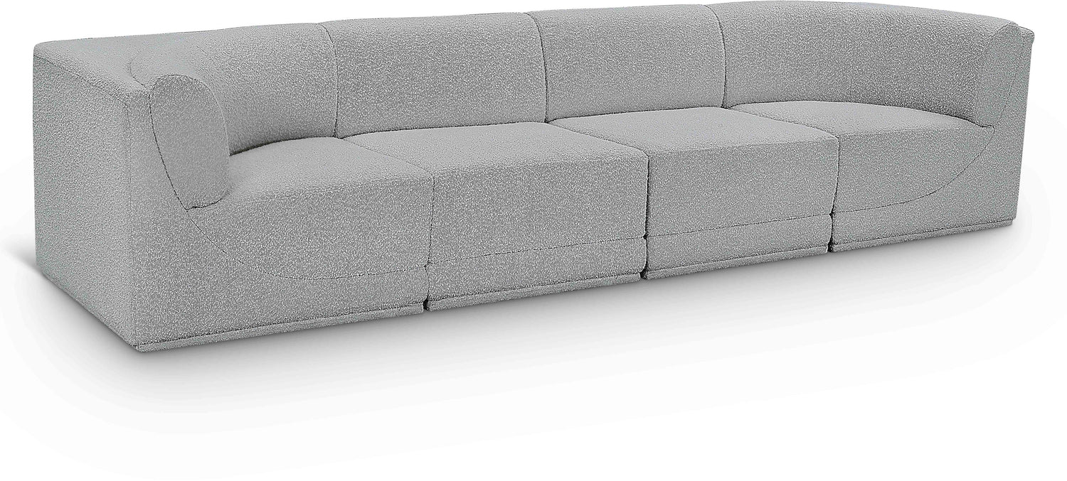 Meet the epitome of style and functionality with this Ollie boucle fabric living room sofa, part of the Ollie modular collection. A contemporary marvel, this sofa features chic and inviting rich boucle fabric upholstery, giving it a sumptuous texture that oozes elegance and luxury. Curved corners add to the visual look of the sofa while maximizing seating comfort while lounging, reading, or entertaining. Pair it with other items in the Ollie collection easily, thanks to an attachment latch underneath.