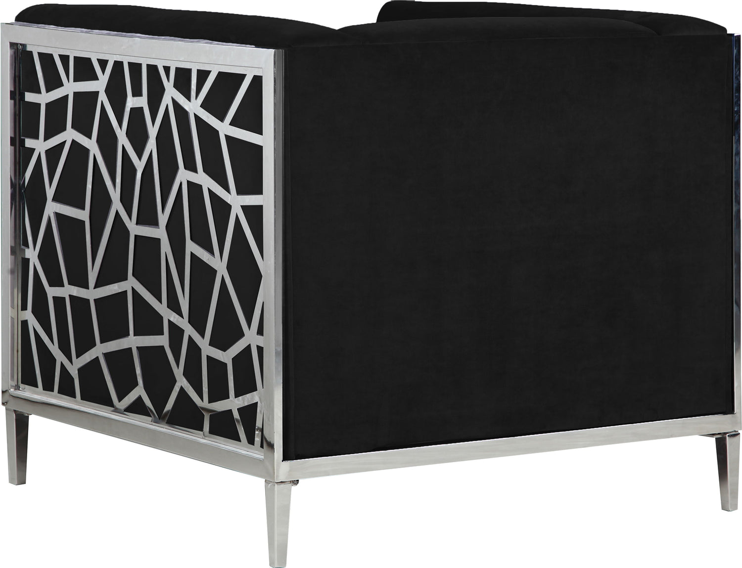 Catch the eyes of all who step foot in your home with this bold Opal velvet chair. Its stainless steel patterned design creates a contemporary flair against its plush, velvet upholstery, creating a home accent piece that is both comfy and stylish. Its roomy design offers ample room to kick back and relax after a long day, while its stocky shape adds a daring touch to your decor.