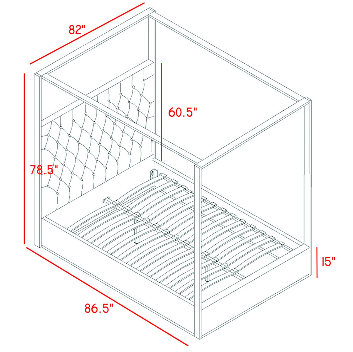 Dream big in the Porter velvet canopy bed. The headboard is tufted for added elegance, and the bed comes with a canopy, adding to its overall elegance and grandeur. velvet fabric used on the sides and headboard gives it a luxe vibe, and the headboard is heavily padded, making it an ideal backrest for reading or watching TV.