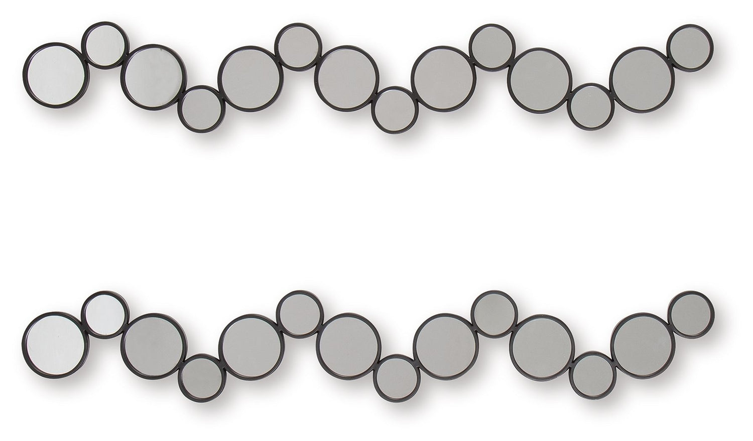 Time to refresh your walls? This accent mirror set is ready to introduce some modern whimsy. A playful arrangement of circular mirrors creates a unique and eye-catching design, while the black frames add a sleek, sophisticated touch. You can hang them four ways—yes, four—to create a custom look that complements your fabulous style.